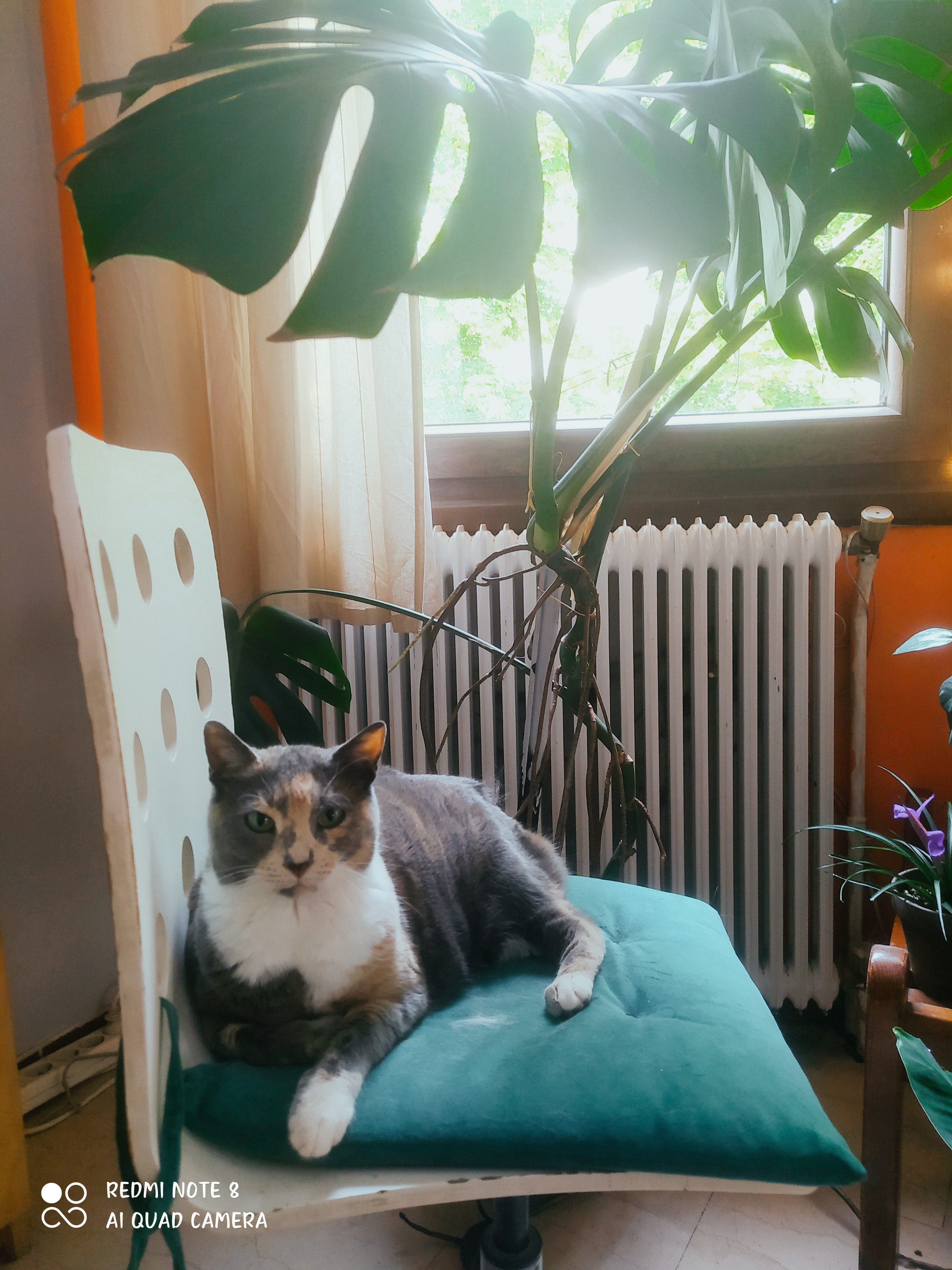Η αγαπημένη της θέση... Πάντα δίπλα στα φυτά και κατά προτίμηση με συνοδεία μουσικής ( έχει και μουσικές προτιμήσεις)