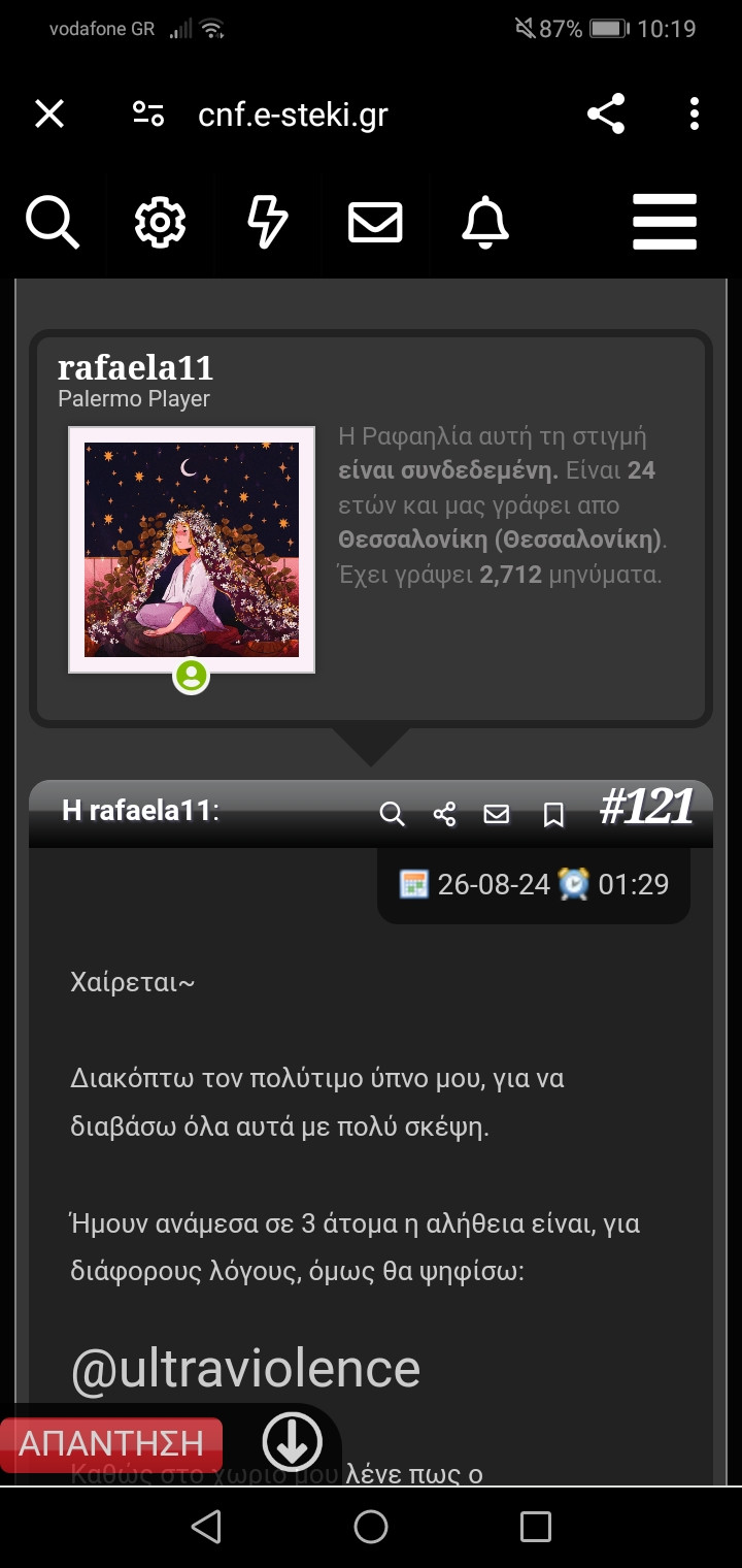 Η Athena (1/3 ΜΕΤΣ) αυτή τη στιγμή δεν είναι συνδεδεμένη. Μας γράφει από Θεσσαλονίκη (Θεσσαλονίκη). Έχει γράψει 7.507 μηνύματα.
