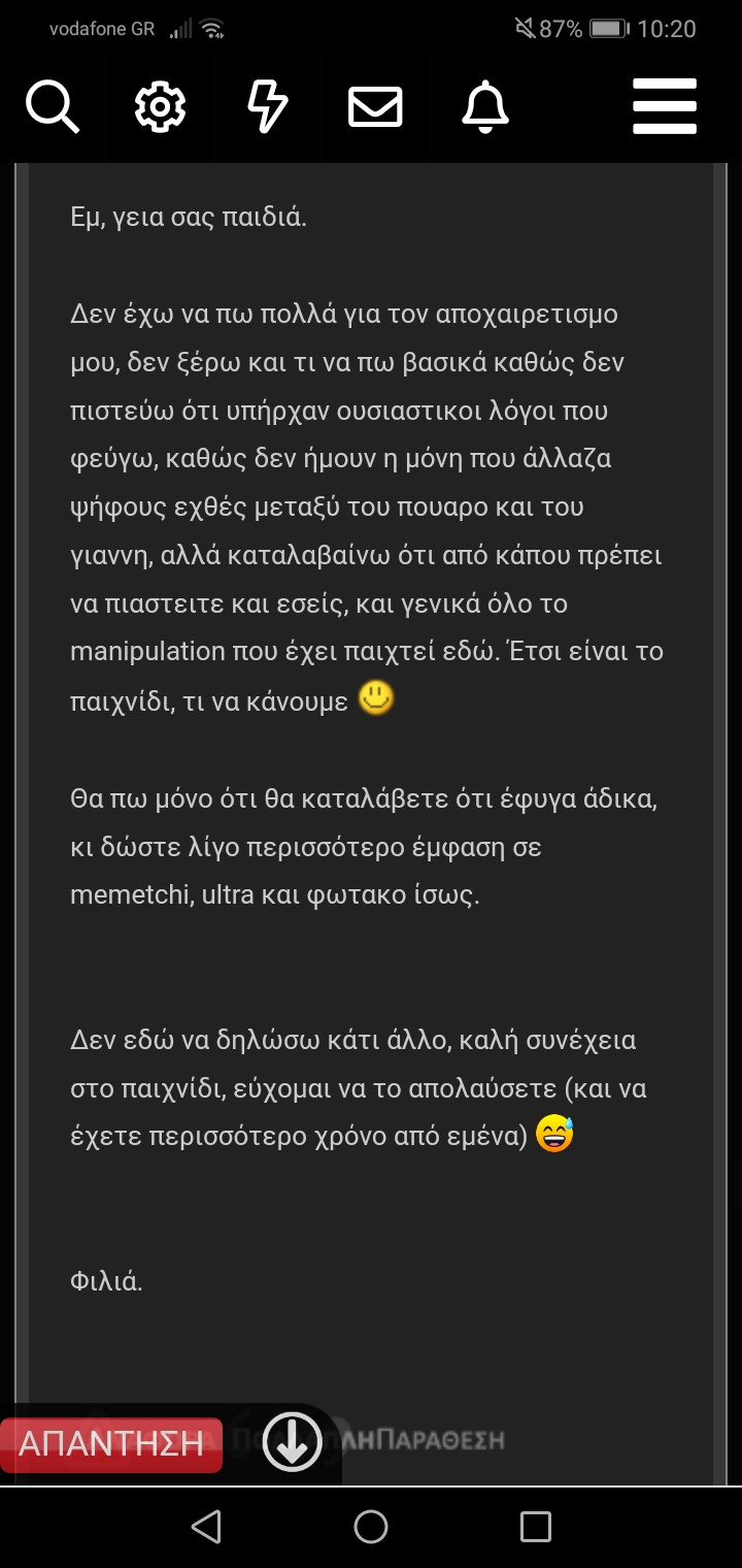 Χαίρομαι που δε μου έδωσε κανένας σημασία. Σε άλλα νέα δεν έπρεπε να παιχτεί τώρα η κάρτα.