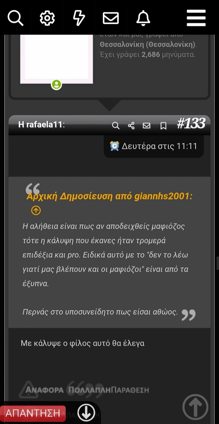 Επέστρεψα και είμαι έτοιμη να σας δώσω όλες τις αποδείξεις πως ο ultra είναι μαφιόζος.